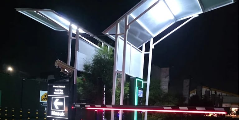Sistem parkir otomatis dan cashless dengan teknologi reader prepaid card yang efisien.